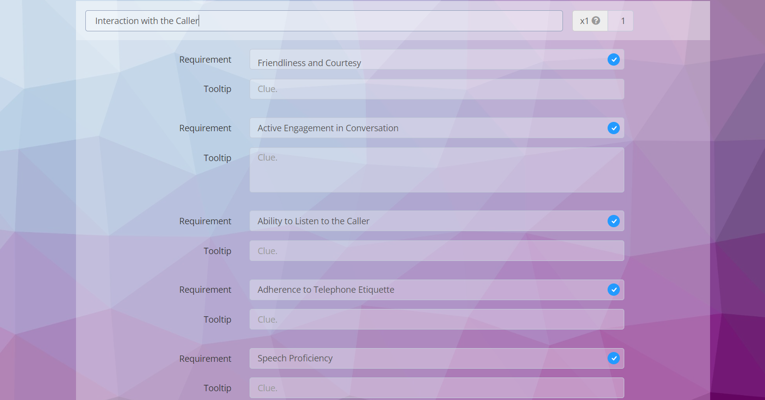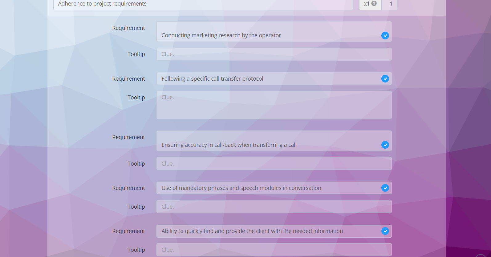 The second step is forming the Evaluation Form. This is a list of questions or requirements by which the dialogue of the agent with the client will be evaluated. For example, if we are evaluating the service of a call center, the form may include questions like “Was the agent polite?” or “How much time did it take to solve the problem?”. Such a checklist will help evaluate the work of the agent objectively.