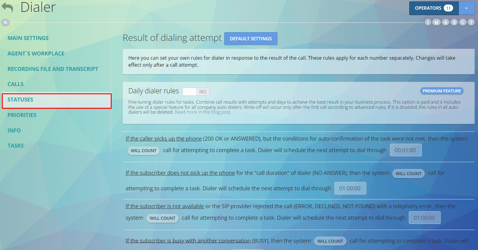 The “Status” Menu in the Auto Dialer Settings has Been Revamped