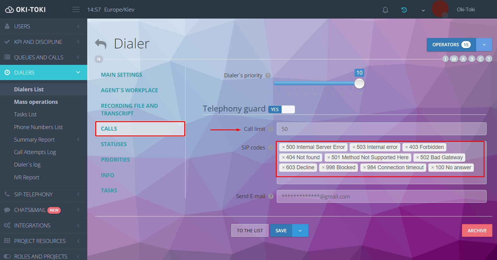 The question often arose about how to preserve the canvassing base if the telephony unexpectedly failed. For this, we created the new function “Automatic disconnection due to telephony malfunction”. If calls consecutively start to end with a telephony error (from the list), then the auto-canvassing will automatically stop.