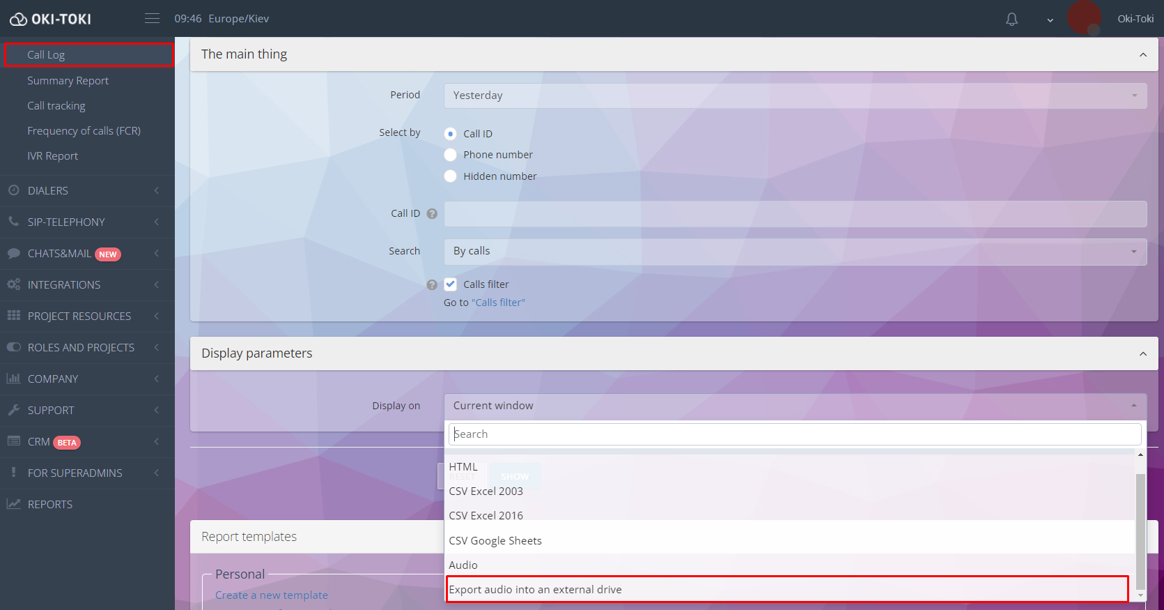 Similar to the integration from the first item but it’s not an automatic process, it’s a manual action. For instance, if you need to send all audio recordings to a client for a project. A couple of actions and the recordings are sent to your drive. All that’s left is to share the folder with the client. If the first item’s integration is present, filters for call export for Autumn, by specific queue look like this.