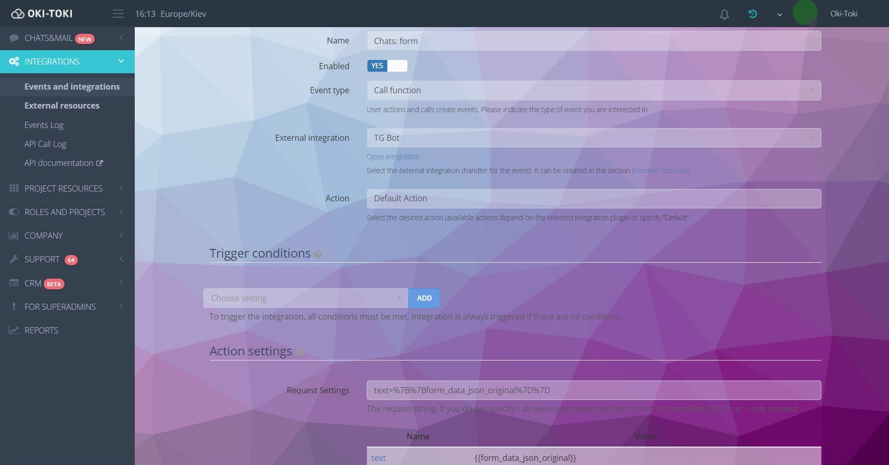In conclusion, integrating a Telegram chatbot with Oki-Toki is accessible for any company and doesn’t take much time to launch. Using this guide, you can create your own bot and set it up to receive notifications about key events in Oki-Toki.