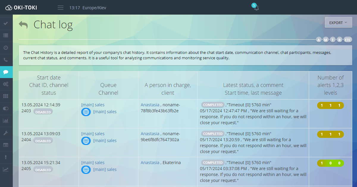 - Insufficient analytics: Oki-Toki provides powerful analytics tools that help collect and analyze data on calls, chats and other interactions with customers. Report designer, automatically send reports by email, historical data, detailed and summary statistics, evaluation of calls and chats – all this allows you to get a complete picture of the work of the call center and make informed decisions.