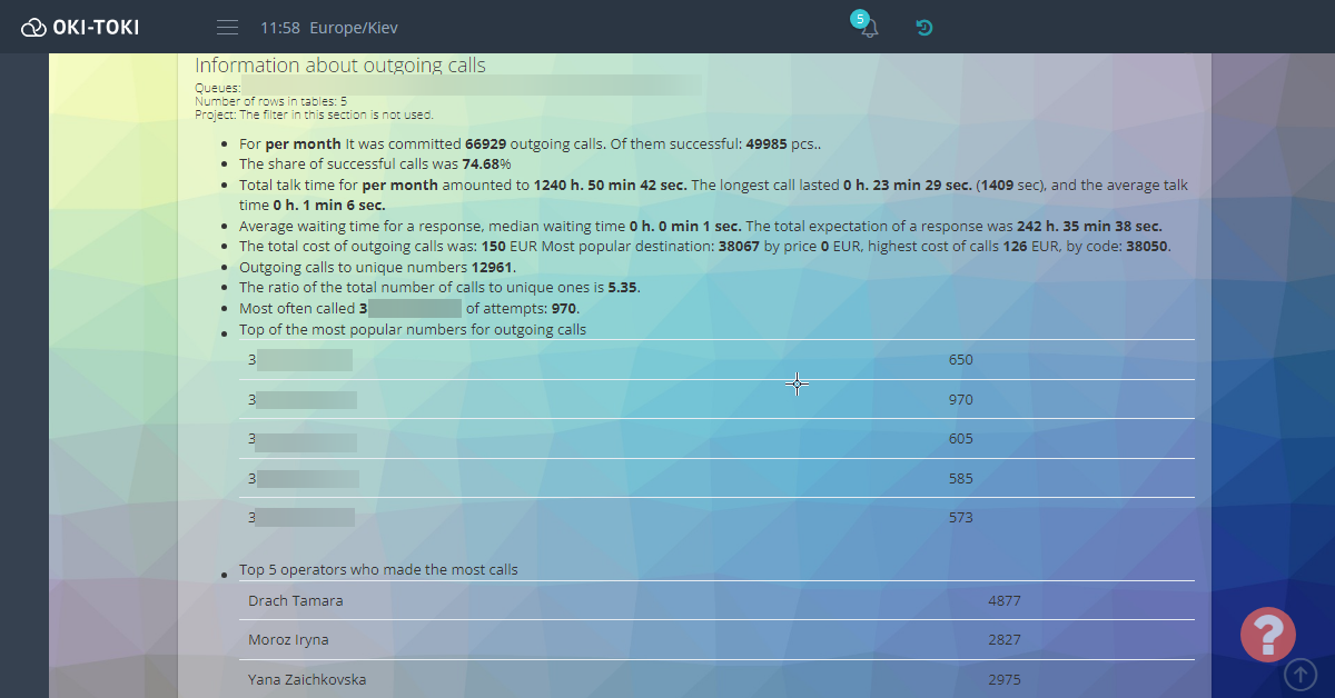 This is just a small overview of the Oki-Toki service and its capabilities. It provides a comprehensive solution for managing call center and contact center operations, helping to improve efficiency, improve analytics, and ensure data security.