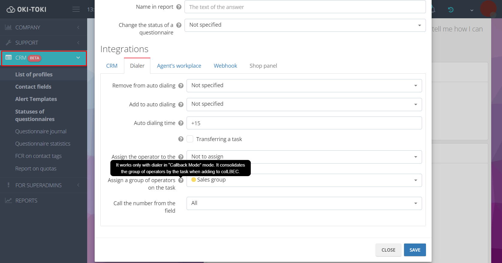 A sticky task is a customer’s number queued for dialer and attached to their manager. This article discusses the team version of stickiness and how to attach a customer to a team of managers. The team stickiness is an enhancement to the “Sticky callback tasks” option and can be combined with it. For instance, if the person responsible for the callback is not available (sick, on vacation, quit), the customer will be picked up by his team. This allows you to keep the customer within the desired skill group and increases the chance of a successful deal. This article pertains to the “Auto dialer and cloud service for dialer” product.
