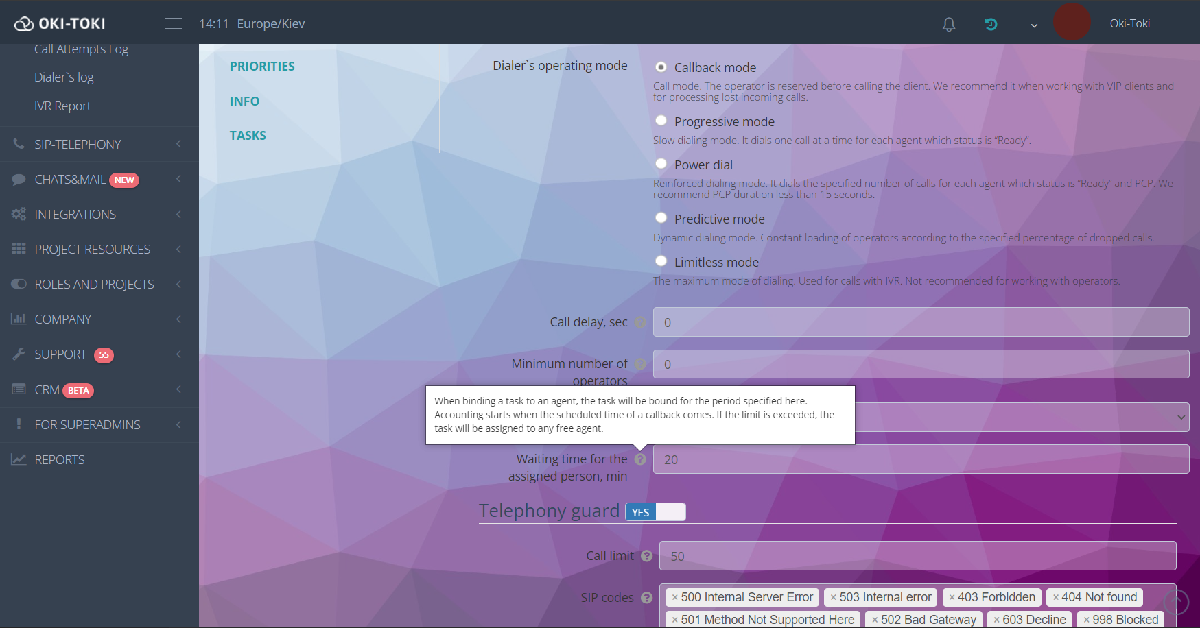 - Specify the duration of the responsible agent’s wait in the dialer settings that needs ‘sticky tasks’.