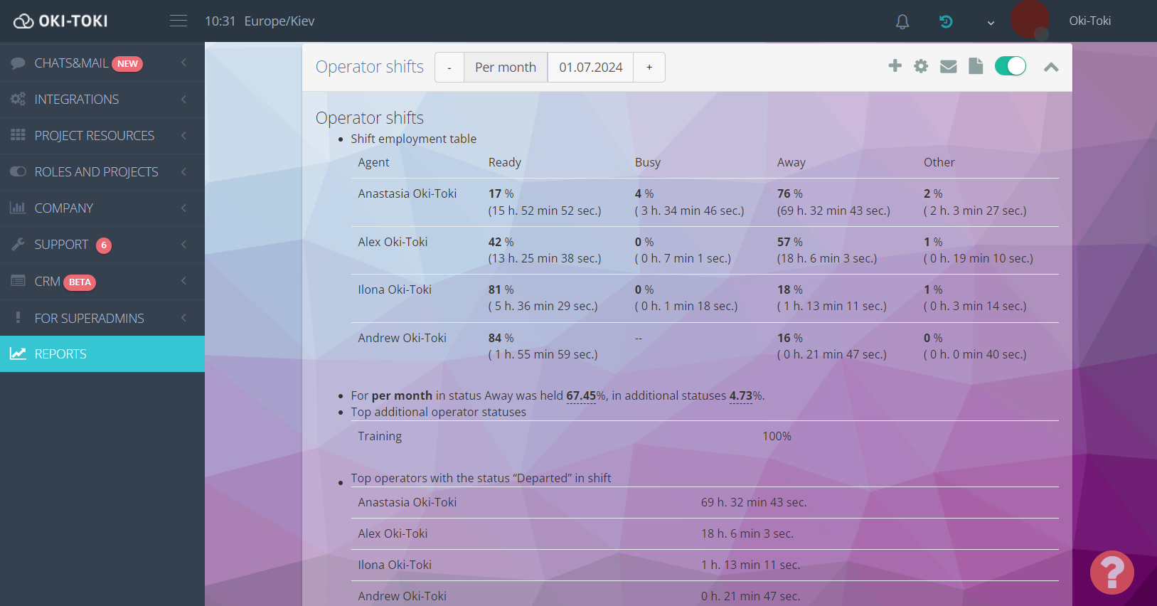 - The launch of a full-fledged CRM system on a new engine, along with the development of a series of important and useful reports for it;