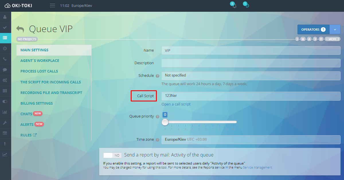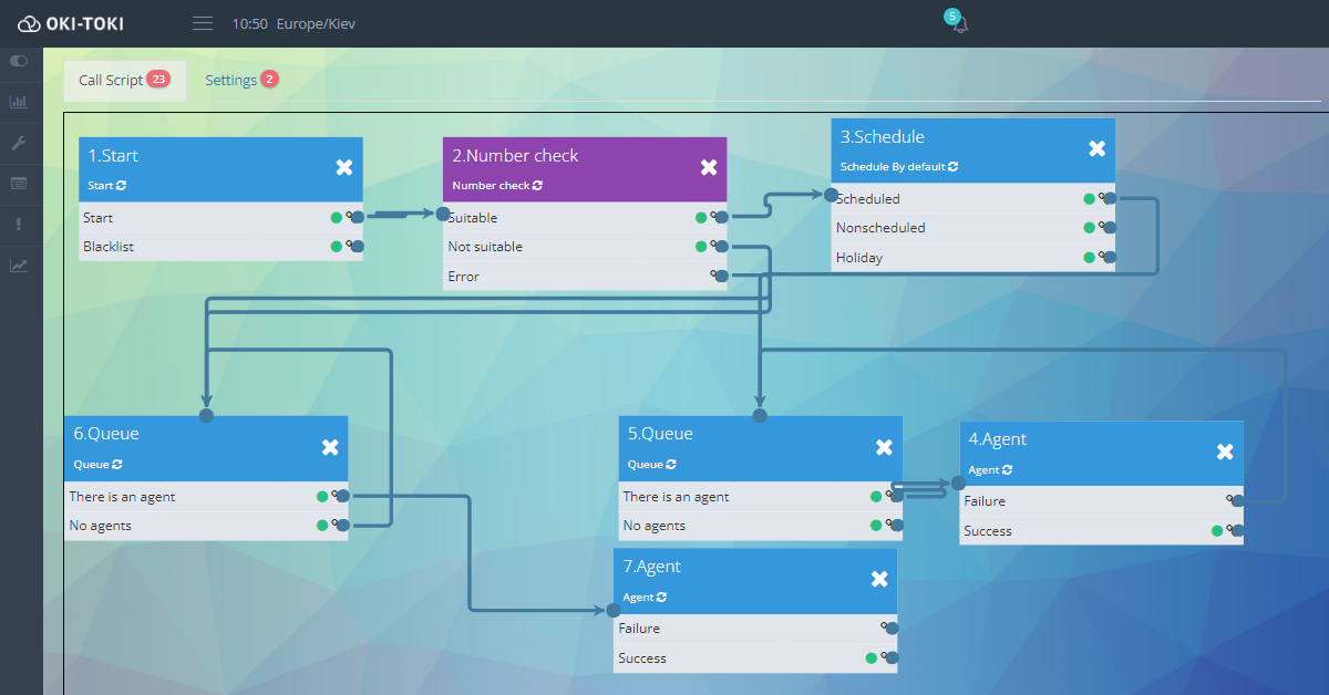 One way to set up a script with a VIP list is as follows: a client calls, the system finds them in the VIP list and directs the call to the queue for VIP clients, then to an agent. Nearly the entire settings chain will look very familiar to you. The difference will only be in the names and the scheme of the call script.