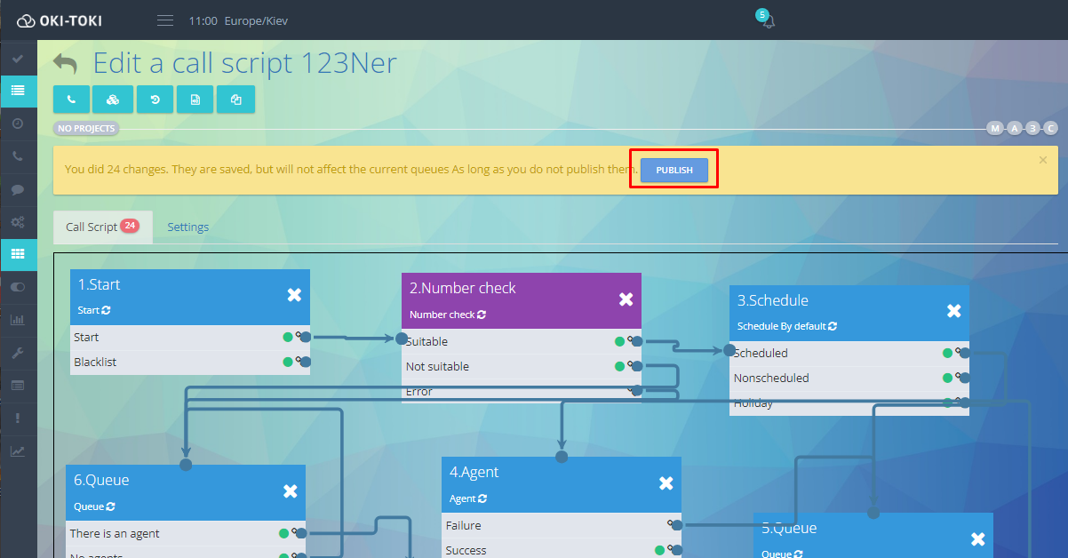 - Don’t forget to publish the scripts, so the settings come into effect;