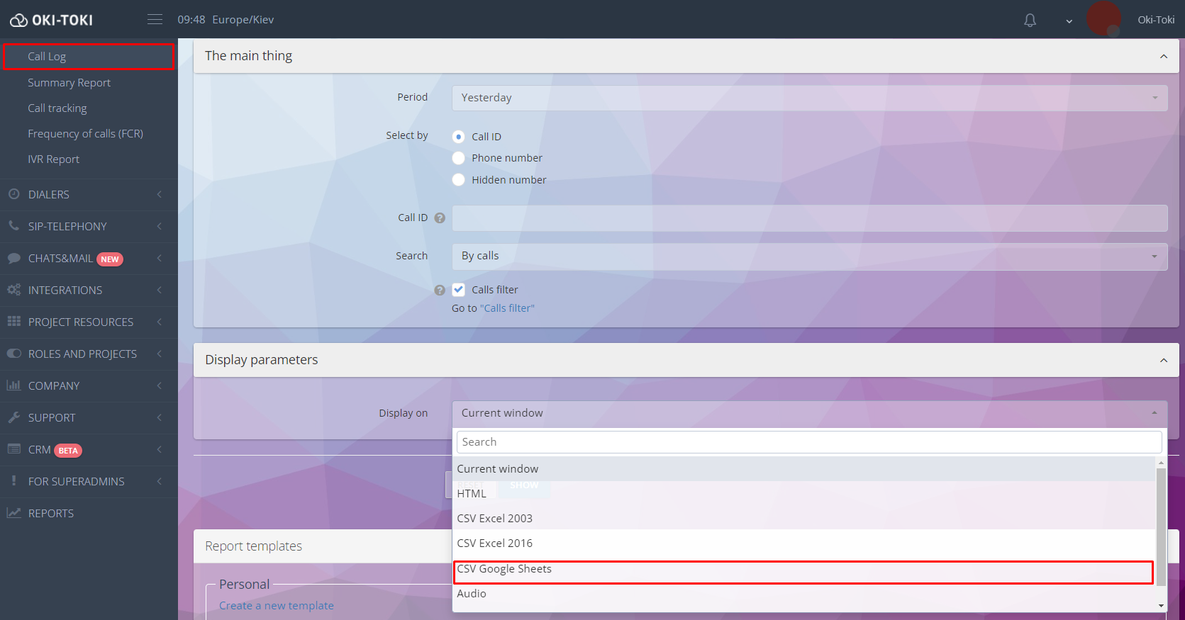 This is a format specifically designed for the syntax of electronic spreadsheet exports. Mandatory coding, desired cell layout, and as a result – a required appearance when loading onto a disk. This point is not an integration per se as it does not require adjustments and bindings. It’s a standard export of a prepared report, but in a suitable format, which is enough to upload to your Google Drive.